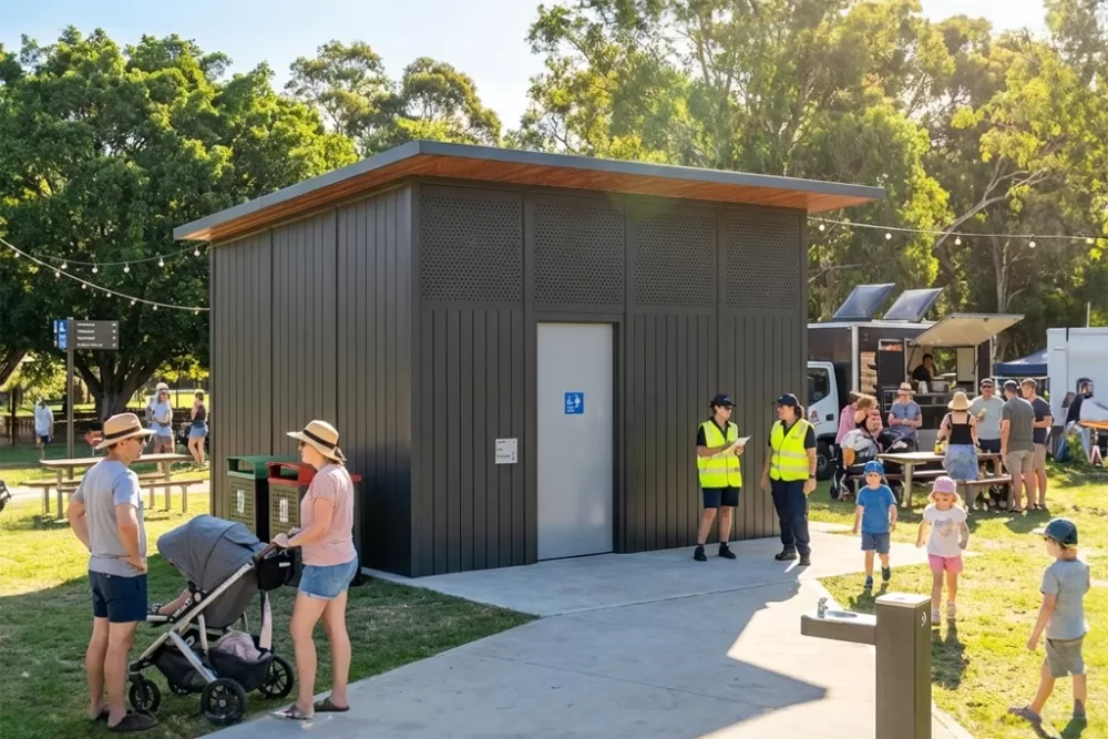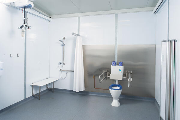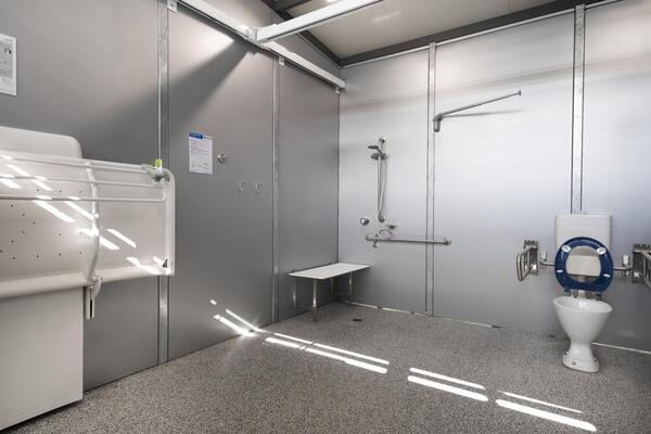 Changing Place Restrooms include essential floorspace for two carers access to hoists and automated adult change table to assist care for people with disability and high support needs.