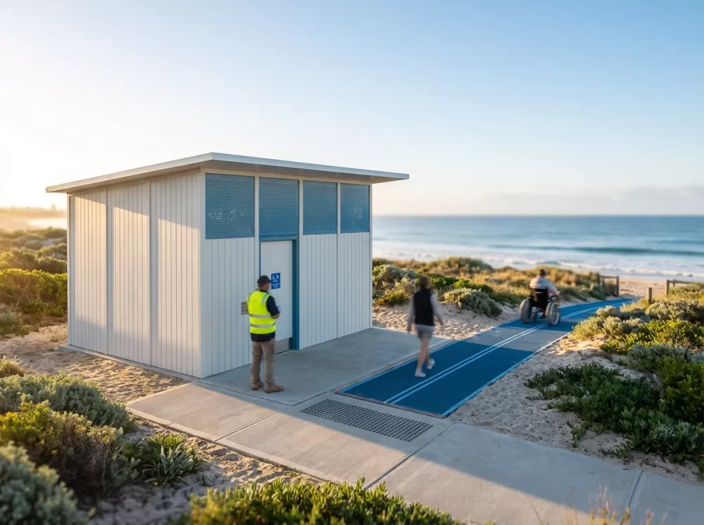 Changing Place Restrooms include essential floorspace for two carers access to hoists and automated adult change table to assist care for people with disability and high support needs.