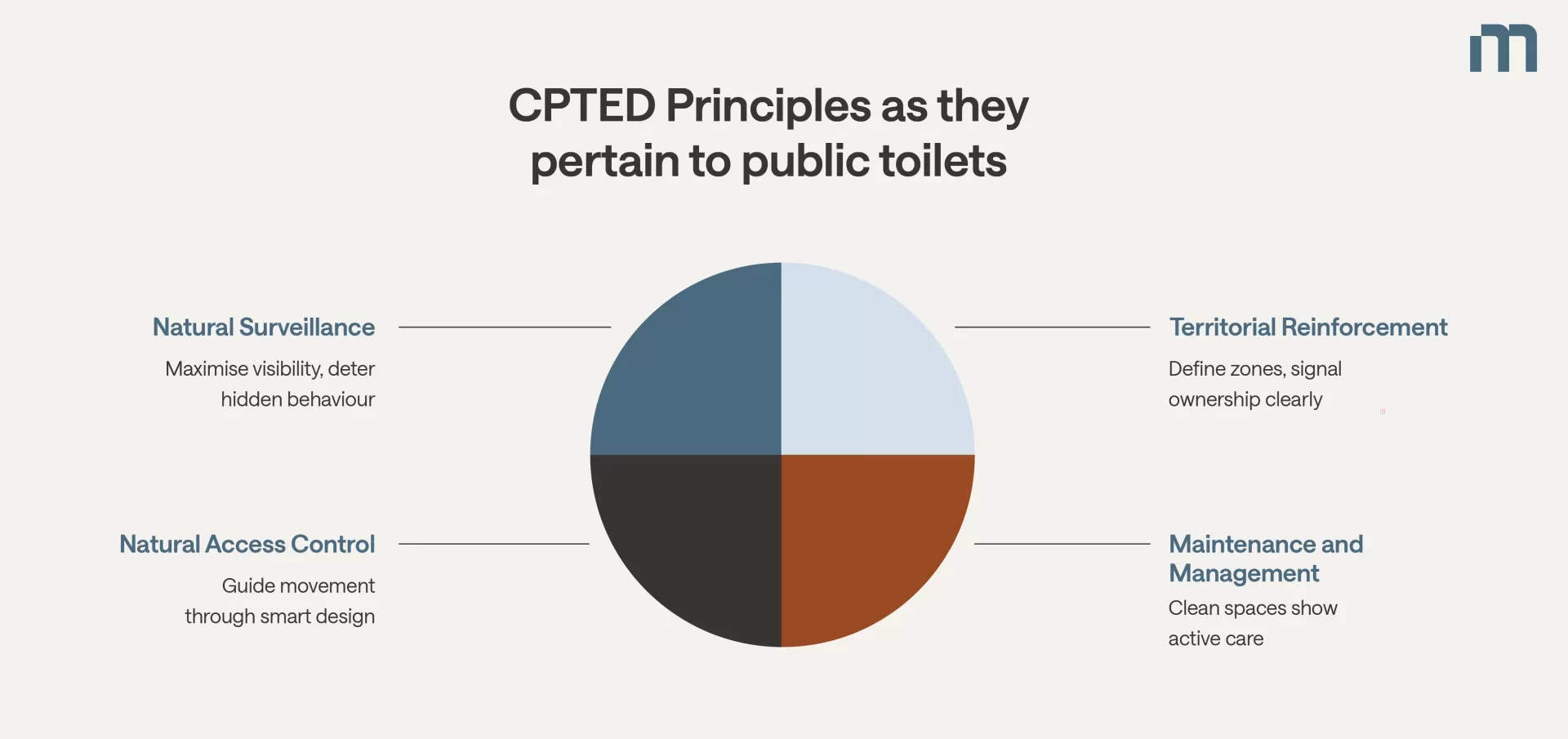 CPTED’s four principles offer powerful levers when it comes to designing or designing or re-designing public toilets:
