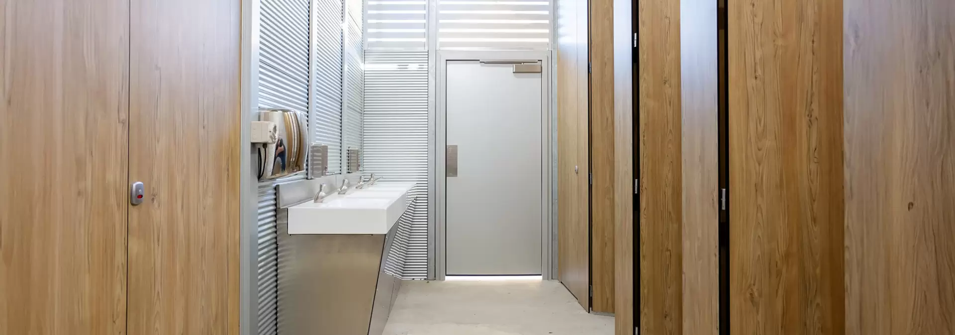 - Build for Easy Care – Select robust steel toilets, easy-to-clean, and graffiti-resistant materials (e.g., coated metals, specific concrete finishes, mini-orb cladding that deters tagging) that will cope with intense use. Design gaps under walls for efficient floor cleaning.