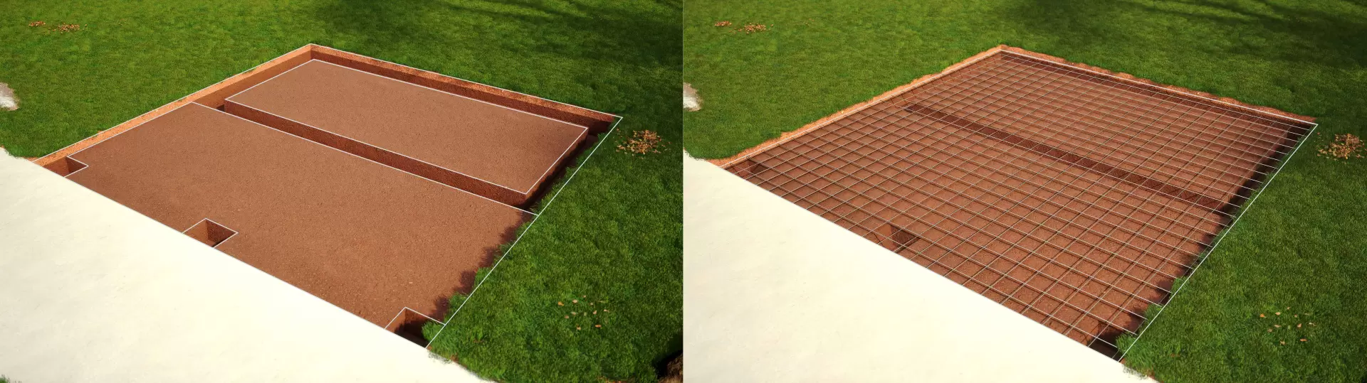 4. Footing pour and cure: concrete is poured into the footings and then allowed to cure.