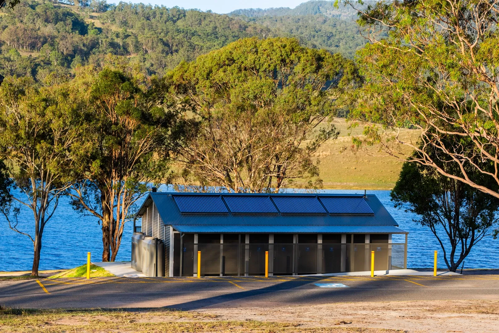 Singleton Council came to Modus after various design solutions didn't quite meet the demands of the riverside setting. We designed and installed a low-maintenance, durable alternative under a tight deadline. The building features 6 showers, 7 toilet rooms, laundry facilities, and hot water powered by solar energy.