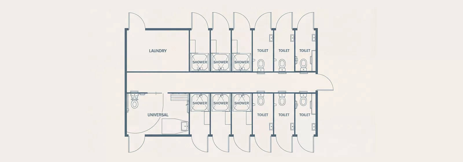 To assist Singleton, we designed and installed a low-maintenance, durable alternative under a tight deadline. The building features 6 showers, 7 toilet rooms, laundry facilities, and hot water powered by solar energy.
