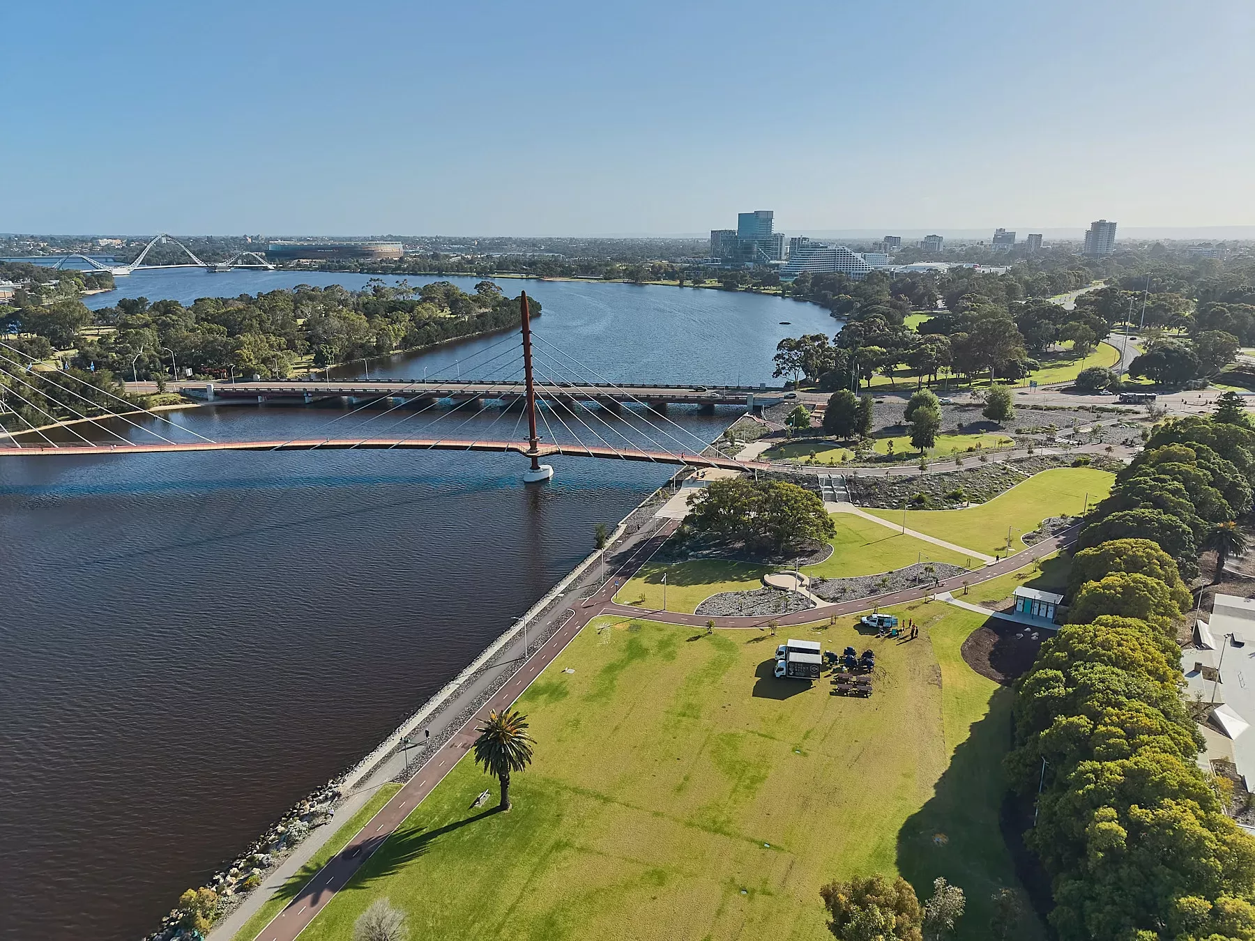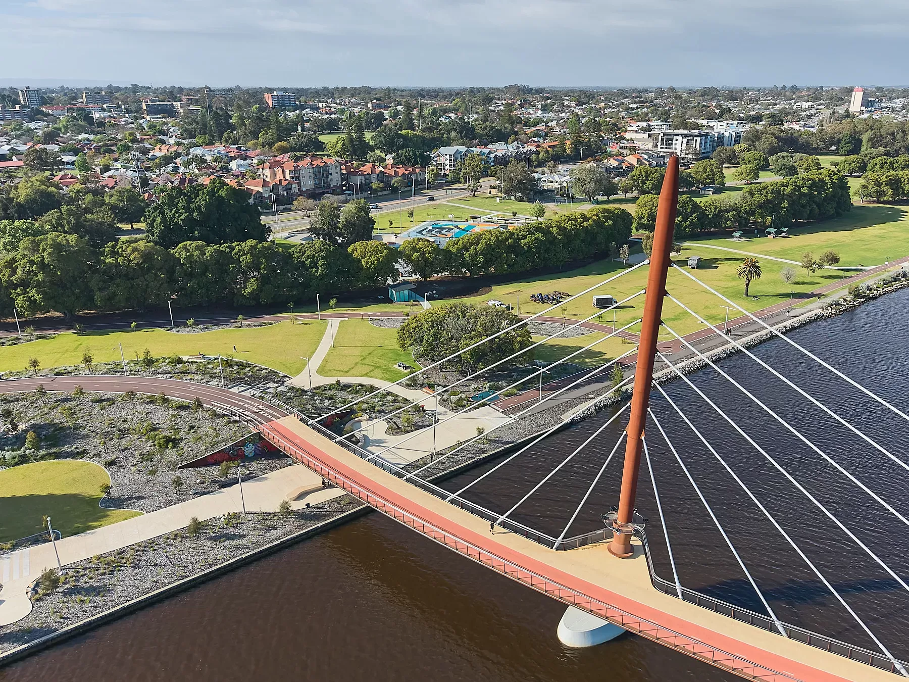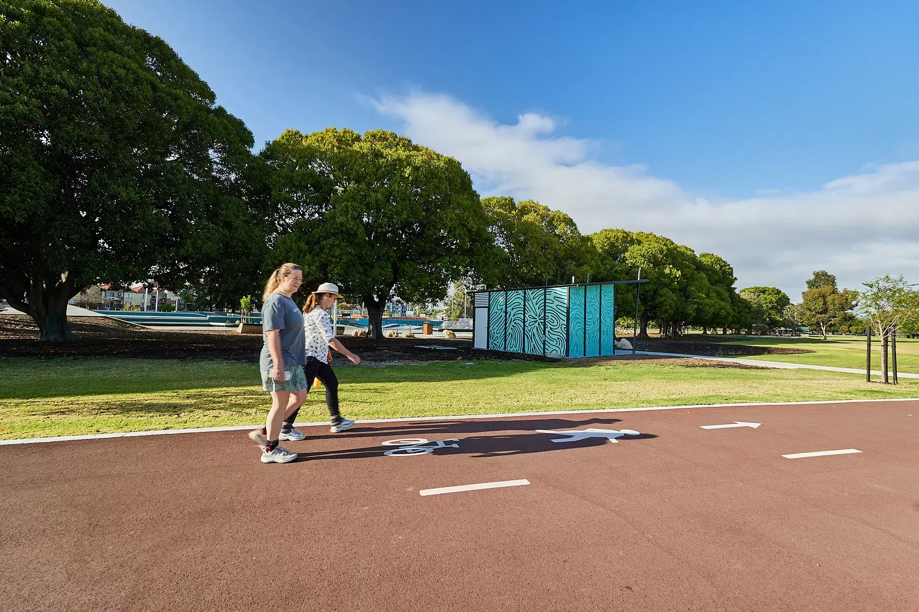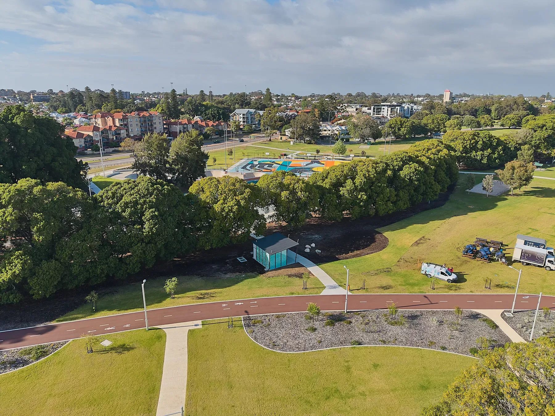 McCallum Park sits at the Victoria Park end of the newly opened Boorloo Bridge, a landmark connection across the Swan River in Perth. Adjacent to the bridge, the park has undergone a $4.8 million redevelopment that includes upgraded basketball courts featuring stunning full-court murals by artists Kamsani Bin Salleh and Chris Nixon, alongside a competition-ready skate plaza, BMX pump track, junior scooter circuit, and active community spaces surrounded by new landscaping and spectator areas. As the park redevelopment progressed, the need for essential amenities became clear. Visitors to this growing community hub required accessible toilet facilities to support extended stays and community gatherings.