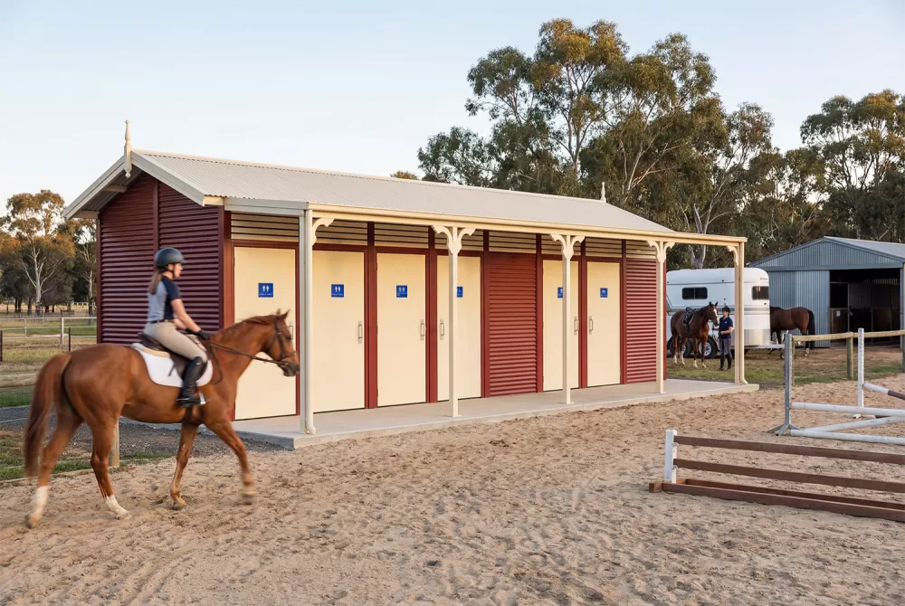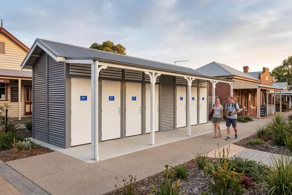 The Burton Toilet Building delivers classic form with a gable roof and trimming, designed to fit well in traditional surroundings. This building can be offered with or without the decorative veranda brackets.